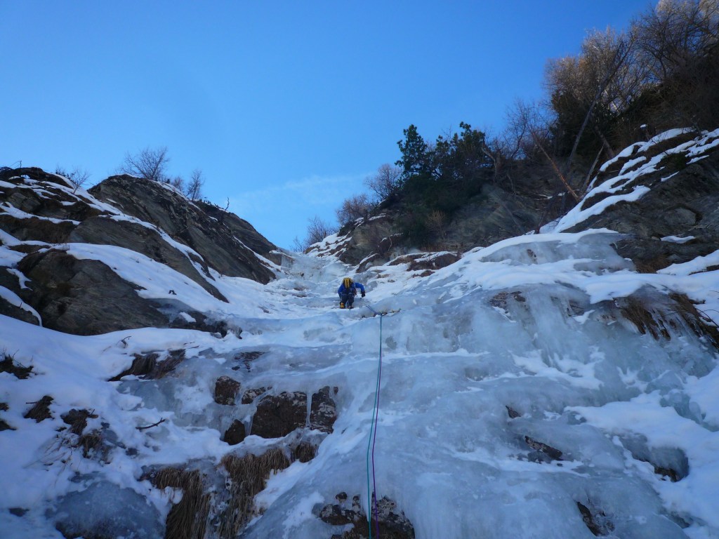 Puis il reste 2 longueurs en 3+ que je ferai en tête, en bonne glace sorbet !